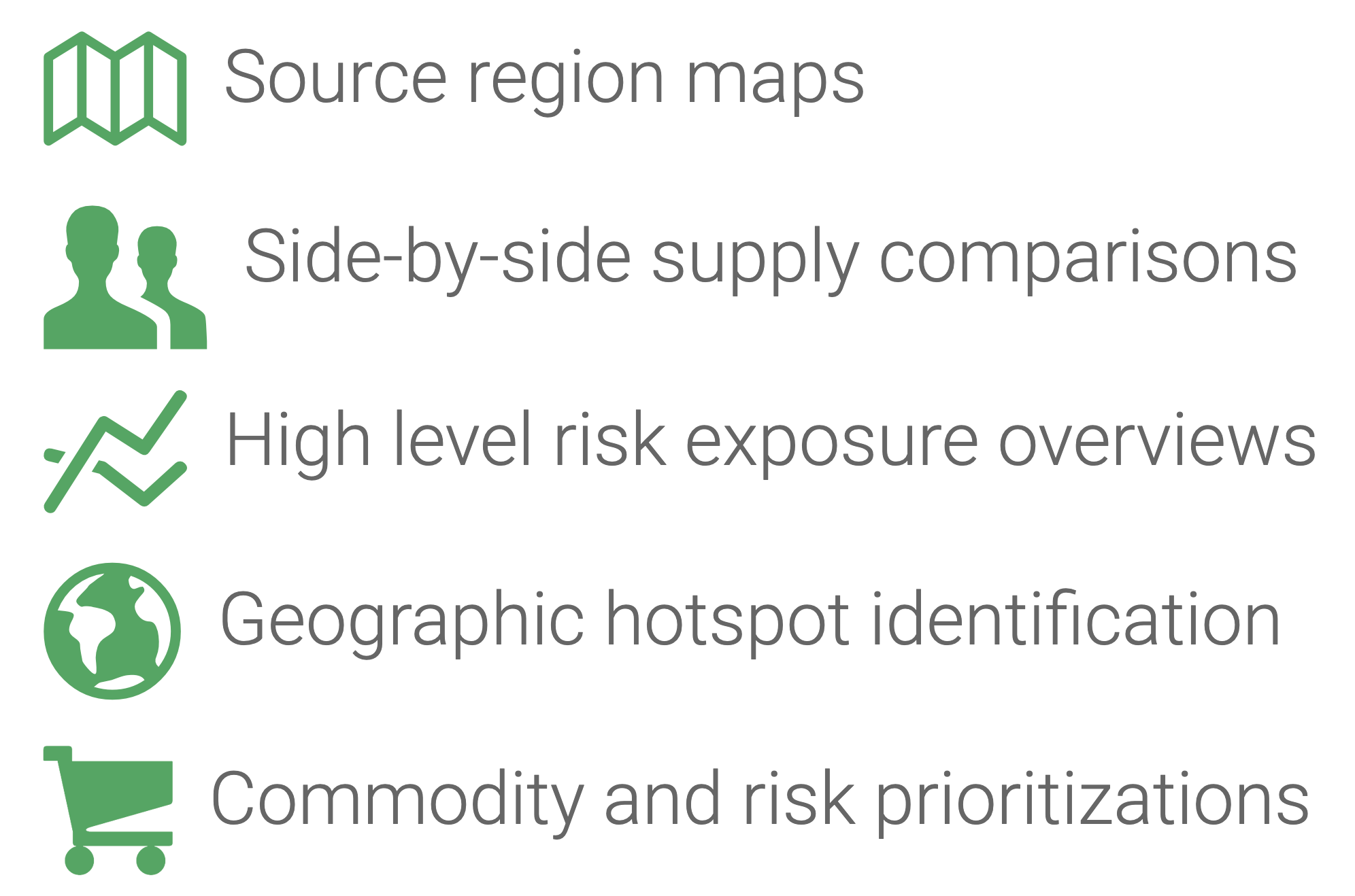 Understand where your most likely commodity source regions are located today and the risks they pose–without having to wait to do time intensive and expensive supply chain analysis