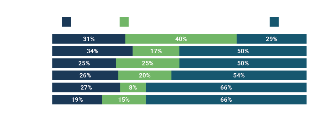 If we lump all non-sustainably sourced content and non-PCR content into “Other”, we can examine how different product categories make trade-offs between these choices. Figure 1 shows the amount of PCR, Sustainably Sourced, and Other packaging content reported by different types of beverage product manufacturers in 2019.