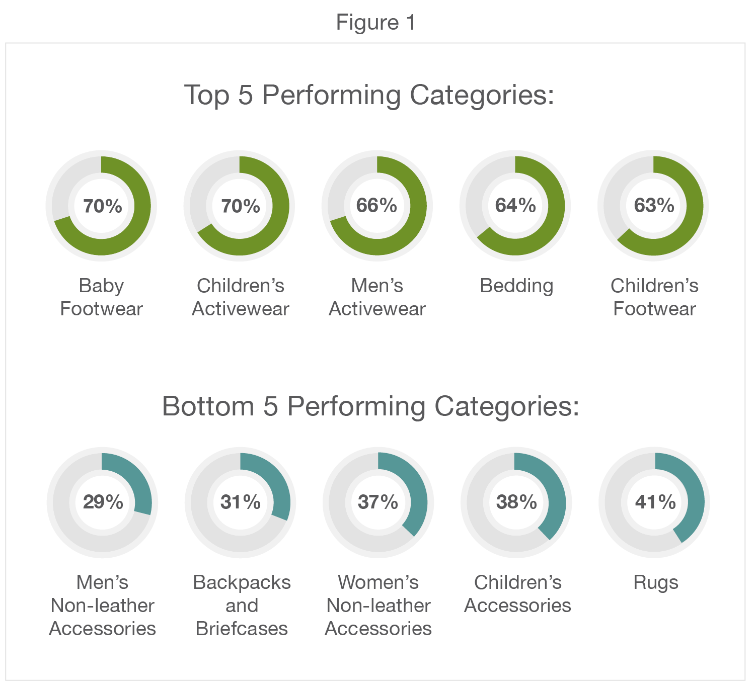Trends in TextilesSeveral recent studies indicate increased consumer interest in purchasing sustainably marketed products, even amidst the pandemici. THESIS 2020 data from 152 companies across 36 different categories of textiles spanning the industry from apparel to linens to footwear to see if there were types of textiles whose brands were taking relatively more action towards implementing sustainability practices. We found that, of the top five performing textile categories in THESIS, four were categories where we’d expect more consumer interest in product safety: baby’s footwear, children’s activewear, bedding, and children’s footwearii.